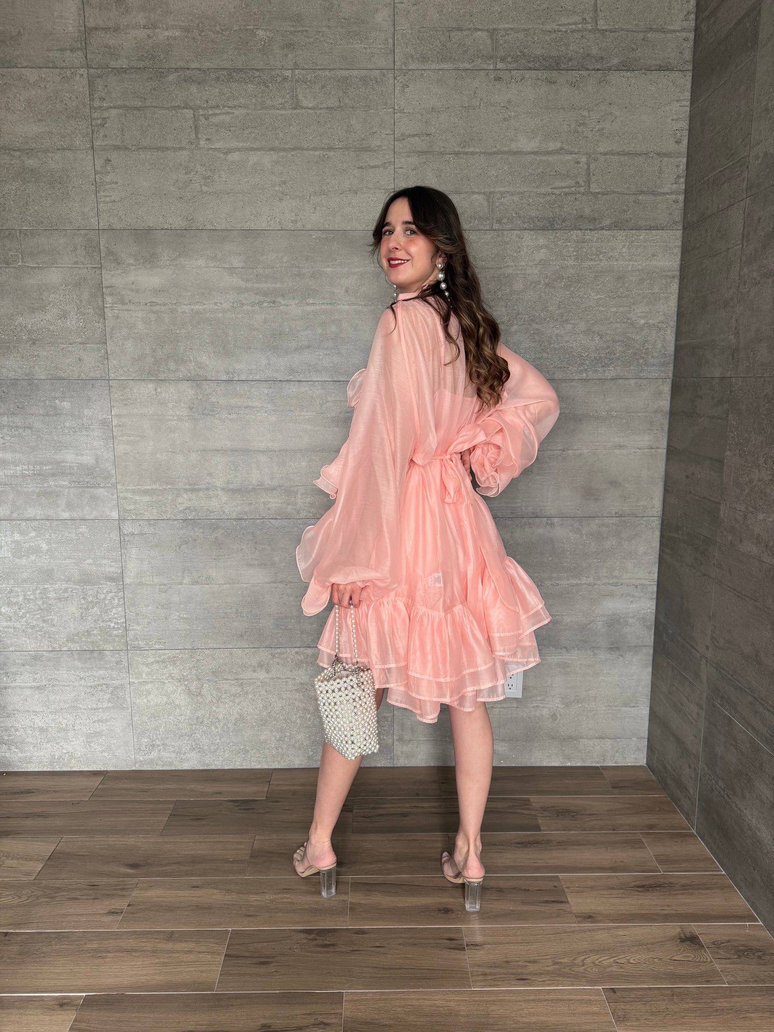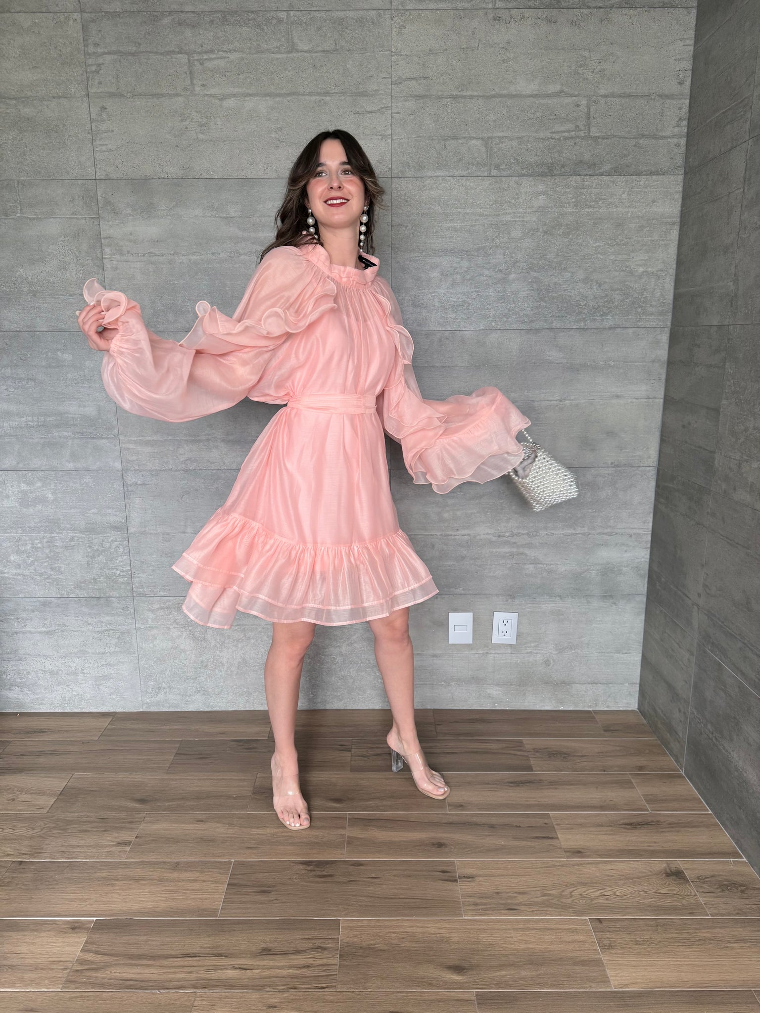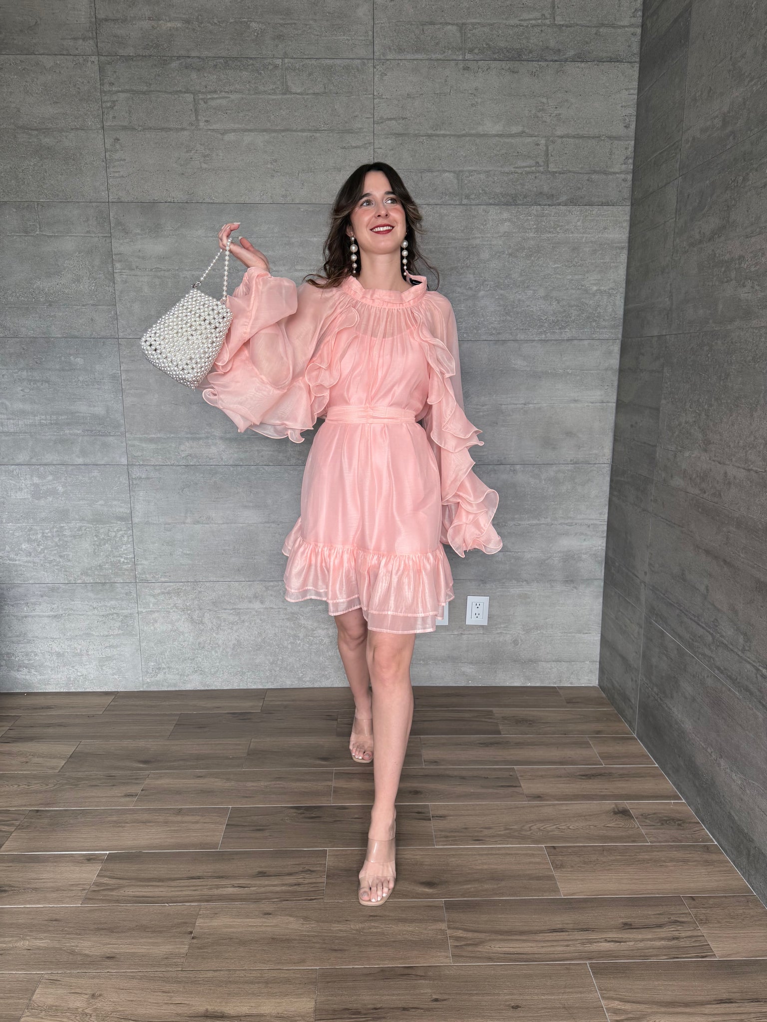 Caliope - Vestido corto rosa con olanes