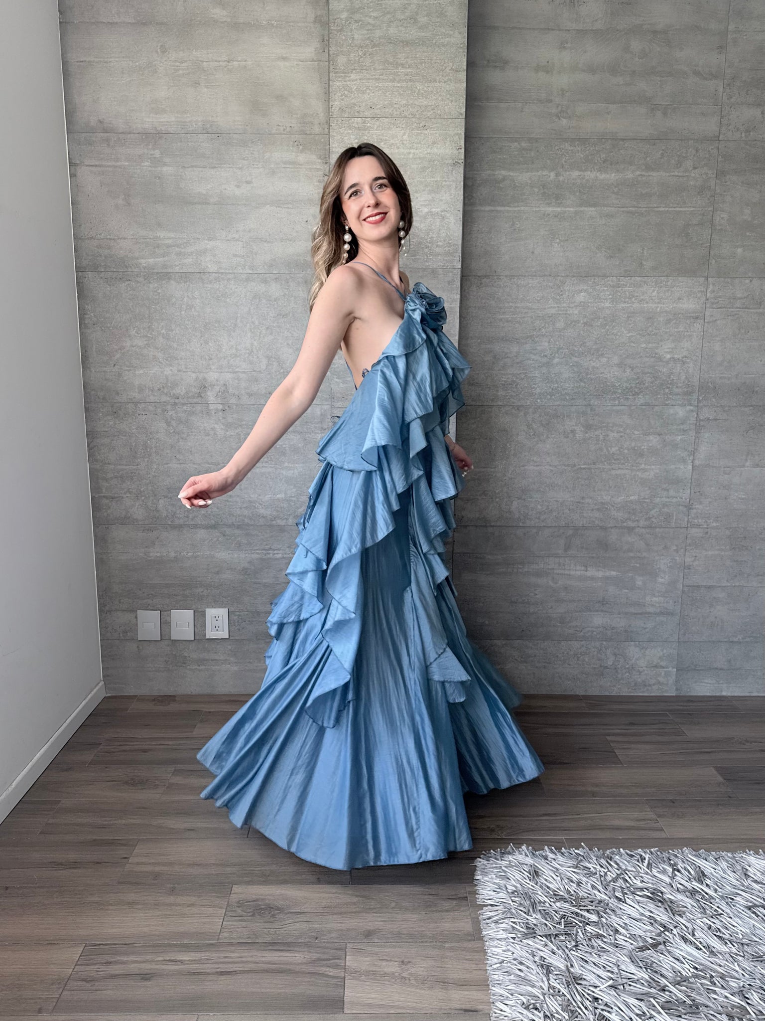 Hilda - Vestido largo con olanes azul
