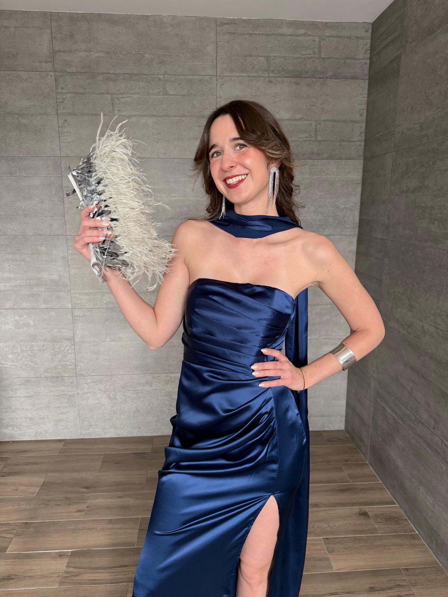 Marena - Vestido largo satinado strapless azul marino