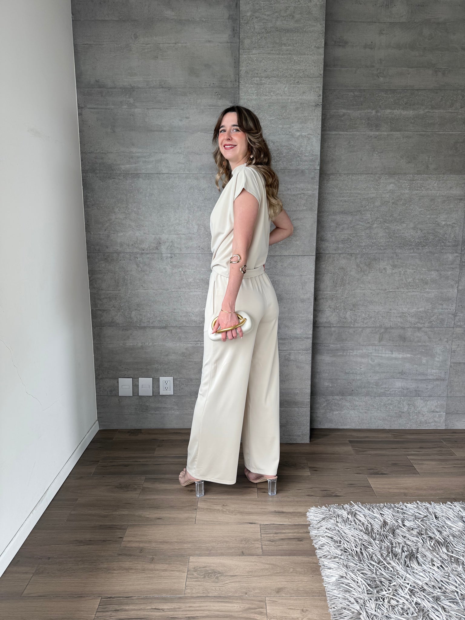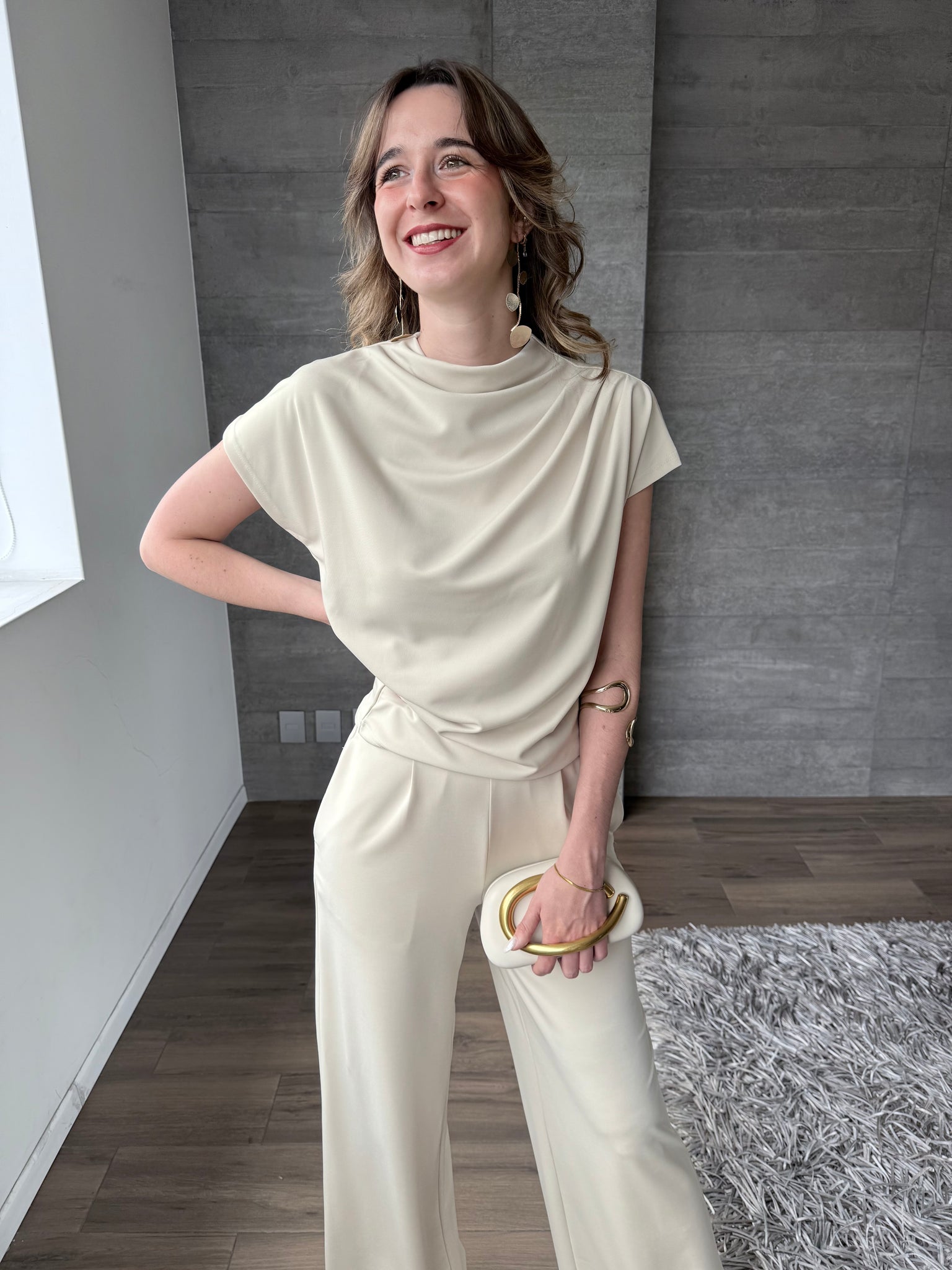 Conjunto de dos piezas, blusa y pantalón con resorte.