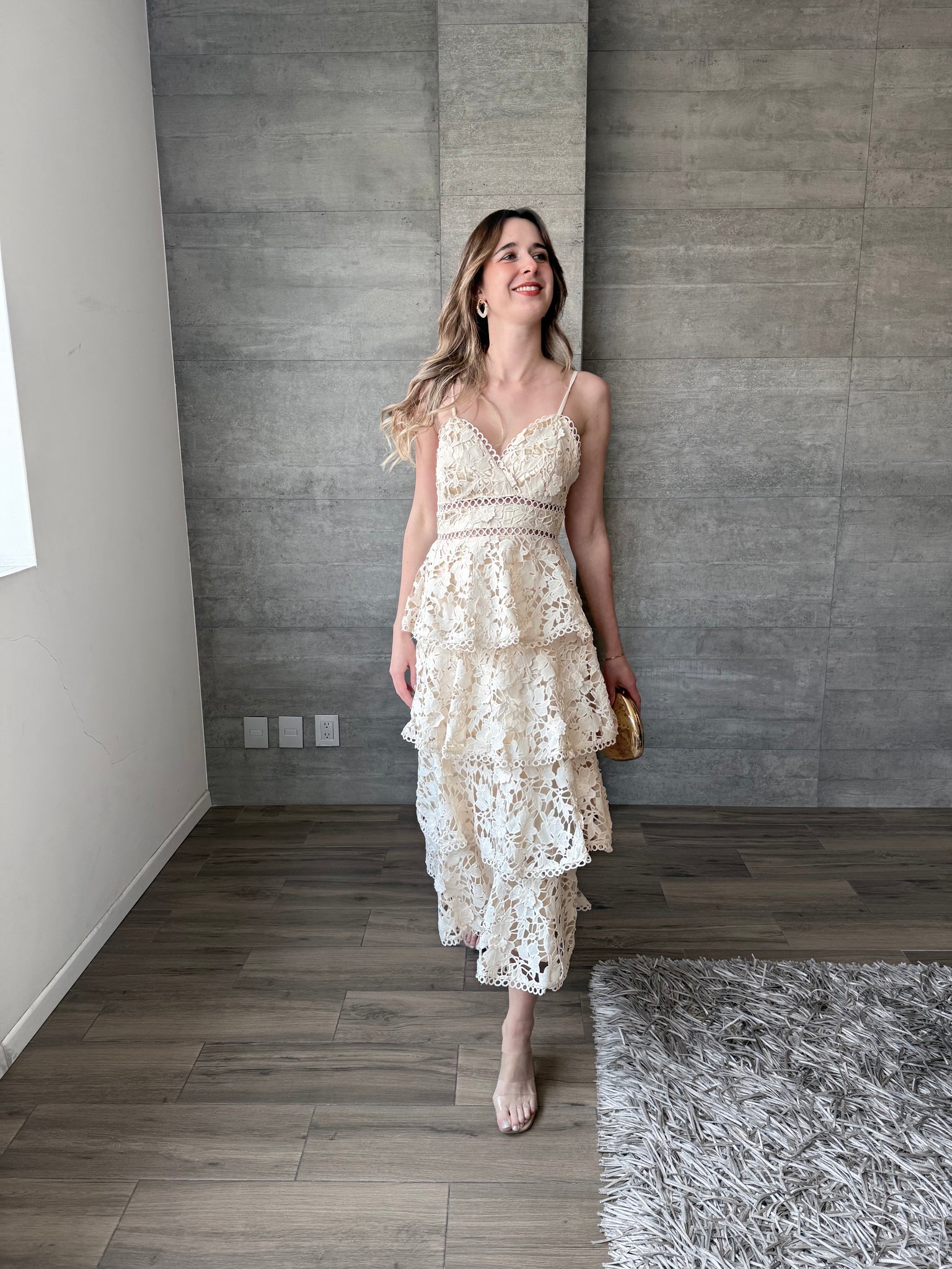 Peonia - Vestido crochet midi macadamia