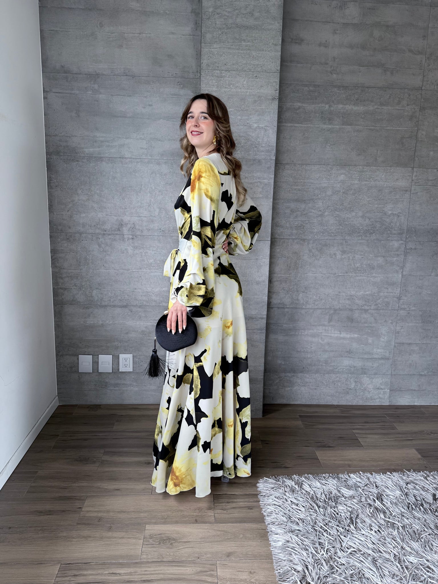 Saskia - Vestido largo con mangas negro multicolor