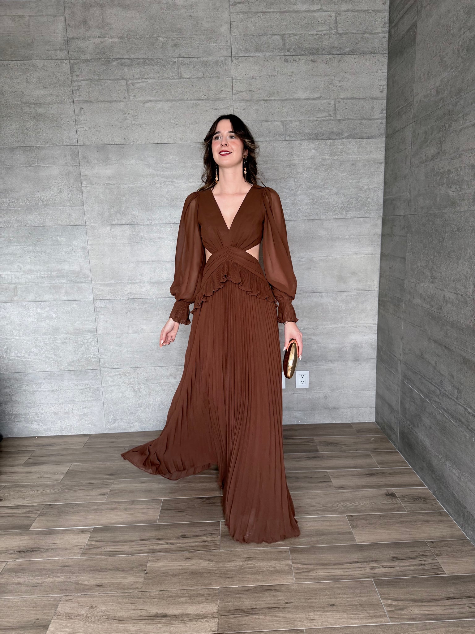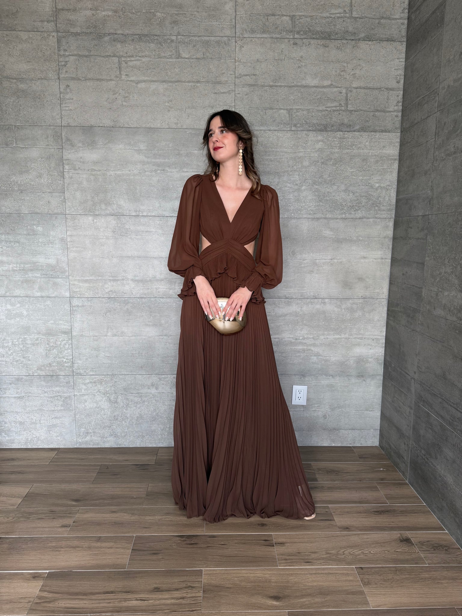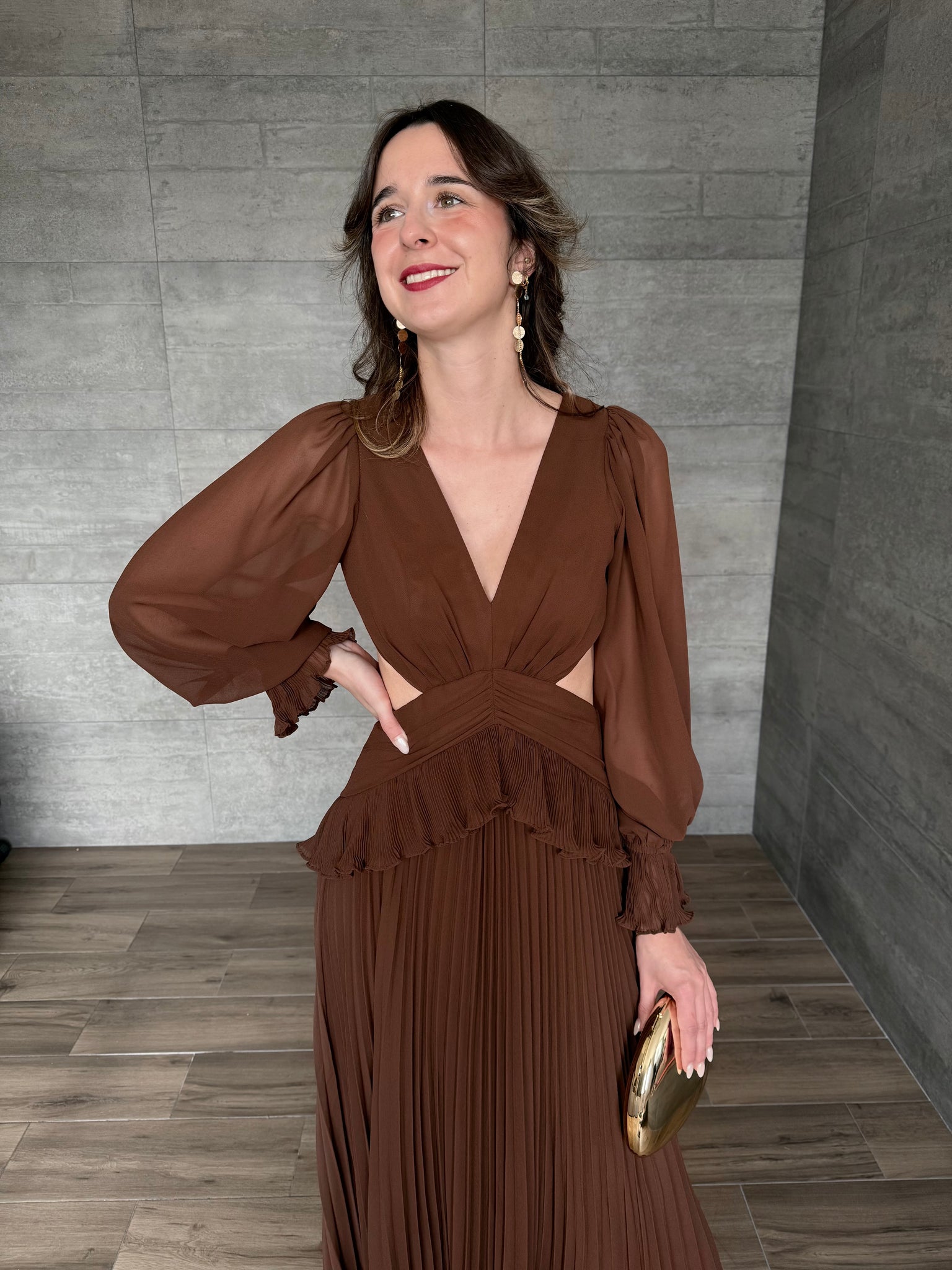 Terra - Vestido largo con mangas café