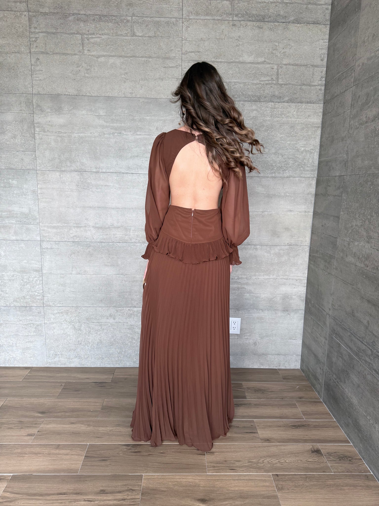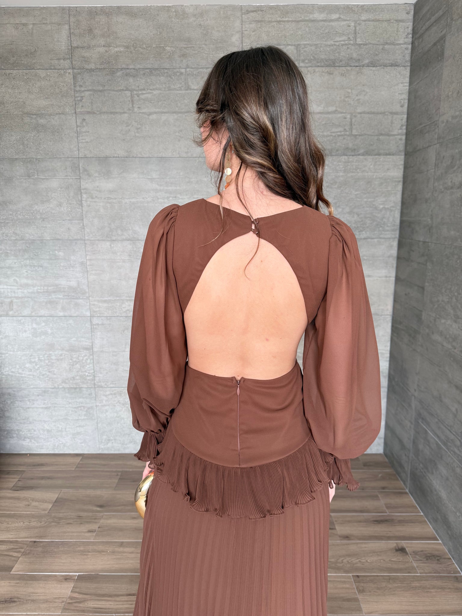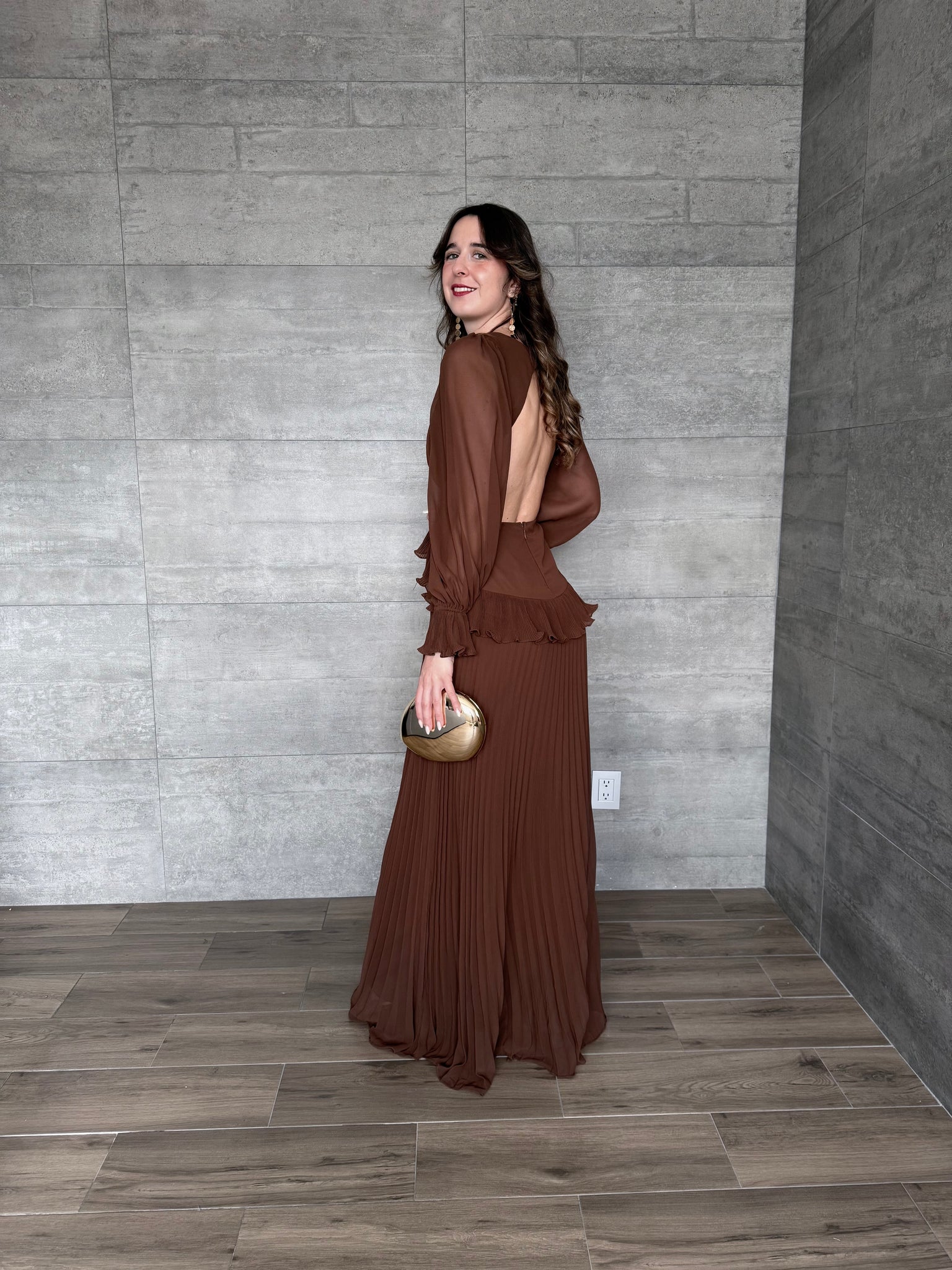 Terra - Vestido largo con mangas café